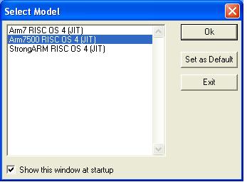Having spoken to a couple of users about this one potential problem did become apparent. Supposing that you have unticked the "Show this window at startup" button, so that VRPC-SA just starts with the previously chosen processor (in both cases the StrongArm), how do you get it to show this startup screen again?