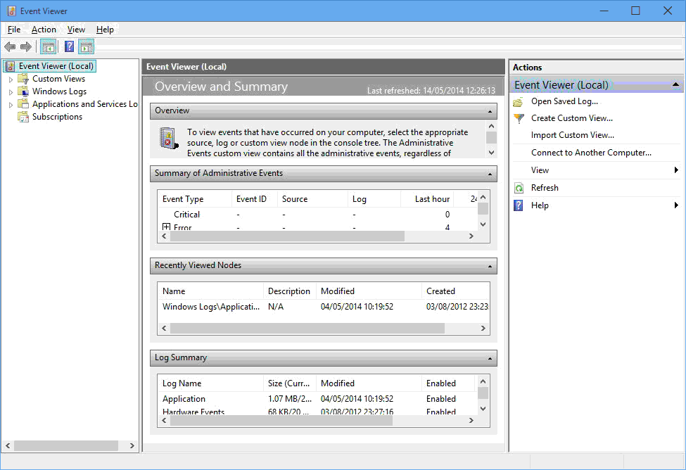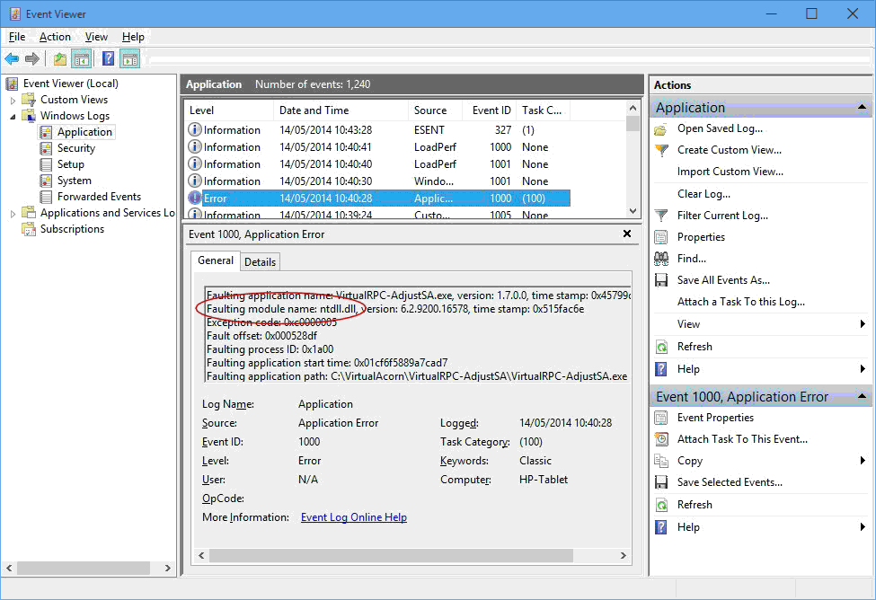 VirtualAcorn Technical support: Windows 10 - Event Viewer
