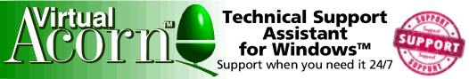 It will only take a couple of minutes for the Technical Support Assistant to ask you some questions. All questions have a Yes or No answer. Read each question carefully and choose the appropriate reply. Once the problem has been diagnosed a solution will be presented. If the TSA is unable to diagnose the problem then you will be given the opportunity to contact VirtualAcorn Technical Support directly.