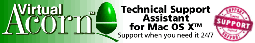 The Technical Support Assistant (TSA) for MAC OS X is an automated problem solving system. It can diagnose and solve most of the problems that VirtualAcorn users will encounter.